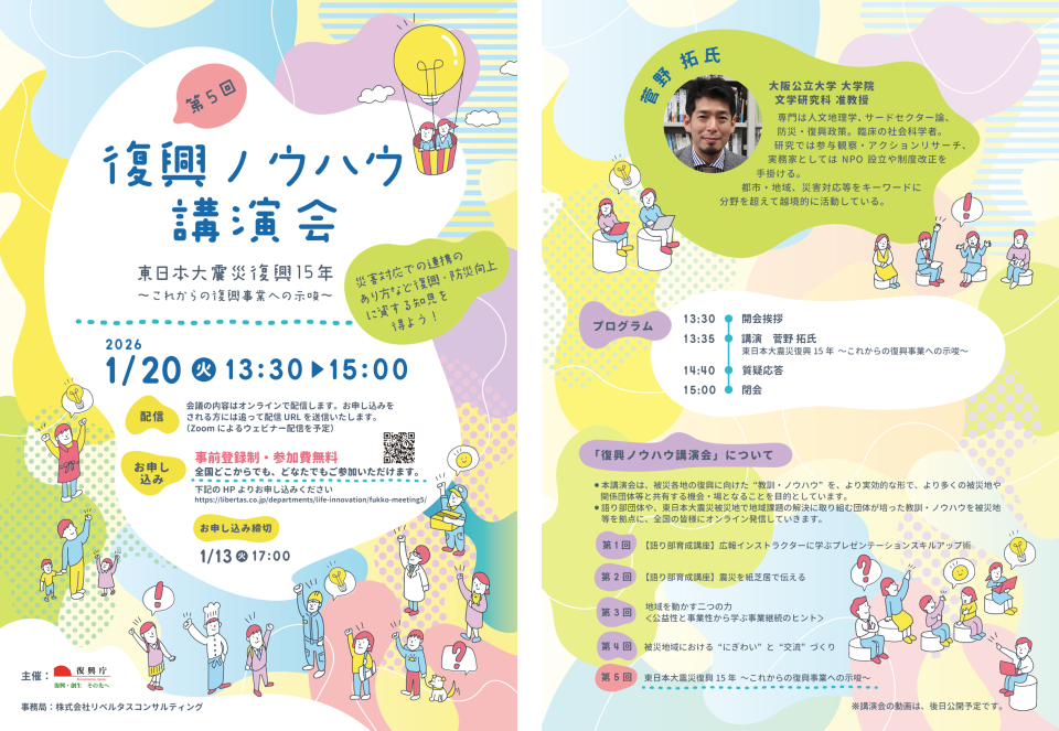 【第5回 復興ノウハウ講演会】 ご案内(視聴申込もこちらから)